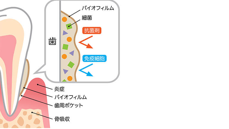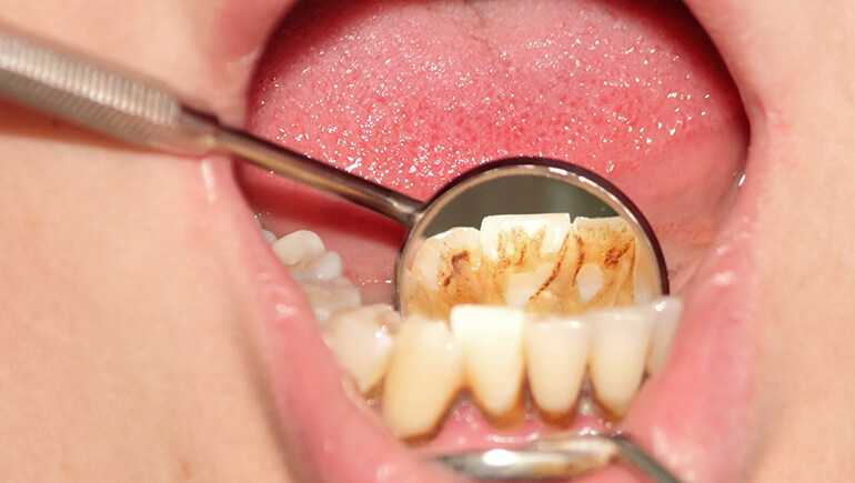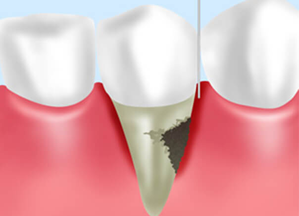歯周病は、歯垢や歯石が歯周組織に炎症を起こす病気です。歯周病が進行すると、歯肉が下がり、歯の根元が露出します。また、歯周ポケット(歯と歯肉の間の隙間)が深くなり、歯周病菌が繁殖しやすくなります。歯周病がひどくなると、歯を失うだけではなく糖尿病や心臓病など、全身の病気のリスクを高めます。
