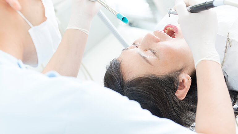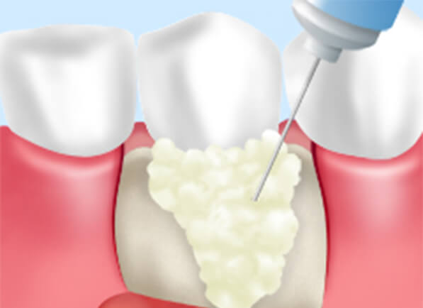 歯垢や歯石を除去し、歯周組織の炎症を抑えることが目的です。歯垢や歯石を除去する治療には、スケーリングとルートプレーニングがあります。スケーリングは、歯科医師が歯ブラシでは落としきれない歯垢や歯石を除去する治療です。ルートプレーニングは、歯科医師が歯周ポケットの深いところに溜まっている歯垢や歯石を除去する治療です。