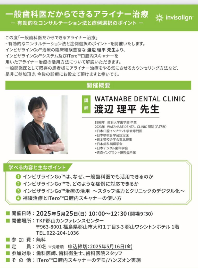 5月25日に歯科医師向けに 福島県郡山市で講演致します。