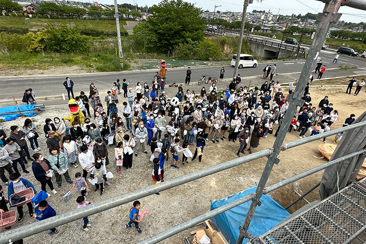 皆様こんにちは。 5月13日13時より上棟式と餅まきをします! 餅以外に何がまかれるのか?お楽しみに